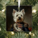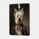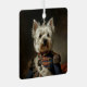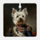 An official oil painting portrait from a West Highland terrier dressed in a Victorian 18th century militairy renaissance uniform like Napoleon. Cute white Westie dog