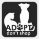 Simple and bold design stating the rescuer's refrain: "adopt don't shop." All proceeds go to support animal welfare projects and shelters.
