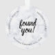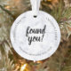 Adoption reunion ornament to commemorate a meeting, reunion or contact. For adoptees who have located, contacted or reunited with biological family members of biological family who want a memento, keepsake or token gift to share with newfound family this ornament declares found you in large black script font with templates that allow you to record the date of reunion or contact and names or other messages. Set on faux white marble. A keepsake for biological mother, father, half-siblings or other extended family member.
