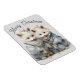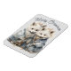 An adorable pair of Arctic foxes dressed in winter garb are featured in this charming digital art (created with AI software) XL holiday flexible fridge magnet with customizable greeting.