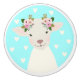 Adorable, baby, boho chic lamb on a light teal background with white hearts. Lamb has cute pastel flowers above each ear making this perfect for any nursery room or part of a young girl's bedroom decor.