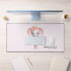 Tapis de bureau avec une adorable illustration. Un éléphant gris ceint d'un tutu rose et des fleurs dansant sur un ballet, debout sur ses orteils tippy.