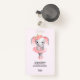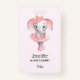 A name tag with an adorable illustration. A grey girly elephant with a pink tutu and flowers dancing ballet, standing on her tippy toes.