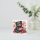 Sweet bear hugs and love for new classroom friendships this Valentine's day. This sweet black bear cub with pink rosey cheeks sits holding a glittery, red heart with "BE MINE" written on a white ribbon. Red roses and rose petals lay at the cubs feet while golden butterflies dance above. A red watercolor swash with red and gold splatters and drips in backdrop.