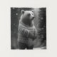 Adorable bear wearing a cozy sweater, set against a wintery forest. The warm and inviting image evokes feelings of comfort and relaxation. The whimsical design is sure to bring a smile to your face and is great for animal lovers and those who appreciate the beauty of nature.