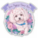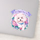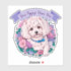 Adorable Bichon Frisé with Assorted Flowers Custom Sticker, a heartwarming and personalized creation designed exclusively for women and girls who hold a special place in their hearts for the charming Bichon Frisé dogs and the timeless beauty of assorted flowers. This delightful sticker features a lovable Bichon Frisé with bright, endearing eyes, an adorable face eagerly looking your way, and a sweet blue ribbon adorning its neck. It is surrounded by a beautiful array of assorted flowers, creating a heartwarming scene that captures the essence of your beloved pet's charm. To add a personalized touch, an elegant purple ribbon is provided where you can proudly display your cherished pet's name.