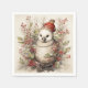 Adorable Bird Wearing Red Cap Holly Red Berries Napkin