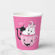 Fun pink Halloween paper cup with the spooky cute design of a black cat and his ghost friend . The non-scary motif makes it perfect for a kid's party . You can add a lid if you wish . Look into our collection to find the matching paper plates and napkins .