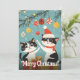 Share holiday cheer with this cute Christmas greeting card featuring two playful black and white cats, one wearing a Santa hat. Surrounded by hanging ornaments, pine branches, and wrapped gifts, the teal background adds a festive touch. The "Merry Christmas!" message completes the design, making this card perfect for cat lovers and anyone who enjoys charming holiday illustrations.