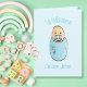 This Adorable Blue Baby Shower Card is such a unique keepsake. A sweet swaddled baby is on the front with the word Welcome. You personalize the name and your message inside.