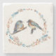 The original artwork for this print is a watercolor and coloured pencil painting of an adorable eastern bluebird couple surrounded by a floral wreath. Artwork from Michigan artist Jennifer Steffen, Jenn's Emporium.