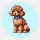 Adorable Brown Toy Poodle with Blue Background Classic Round Sticker