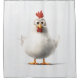 A charming and comical cartoon-style chicken with fluffy white feathers, big expressive eyes, and a playful appearance. This digitally illustrated hen has a bright red comb, a cute orange beak, and an amusingly surprised expression, making it perfect for animation, branding, or easter illustrations.