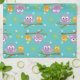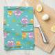 Adorable Cartoon Style Owls on Branch Print Kitchen Towel