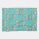 The cute pattern features purple, and yellow, owls on a tree branch tiled on a pretty, teal blue, background.