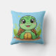 Adorable Cartoon Turtle Smiling Cheerfully Throw Pillow
