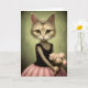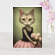Adorable Cat Holds Pink Roses Card