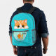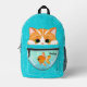 This adorable orange tabby cat is peering into a goldfish bowl on this backpack. Add your child's name to make it extra special.