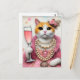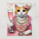 Adorable Cat Pink Dress With Pearls with Drink Postcard