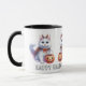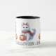 Salut ! Ajoutez le charme Whimsical à votre table de Fêtes avec cette mignonne chatte Halloween Mug! L'oeuvre d'art comporte un adorable Kitty blanc Fluffy aux yeux bleus. Elle est ornée d'un costume d'Halloween avec un Bow et Cape. Une jolie Jack-o-lanterne est à ses pieds. Le verset dit : "Joyeux Jennifer Halloween !" Personnalisez cette Mug d'Halloween Super Cute Kitten en ajoutant votre nom d'êtres aimés, ou votre propre phrase.