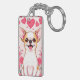Adorable Chihuahua With Pink Hearts Keychain