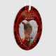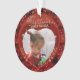 This adorable CHRISTMAS PHOTO ORNAMENT in bright red, some orange, and burgundy frame with Christmas ornamental graphic features a photo of your grandchild and a Merry Christmas wish from the Family members. All text on the front and back allows for customization.