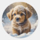 Adorable Christmas Puppy on a Snowy Night Classic Round Sticker