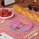 Great accent for an outdoor summer party. Bright colors, vibrant floral design