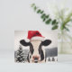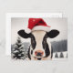 Adorable Dairy Cow in a Santa Hat Postcard