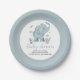 Adorable Elephant Blue Baby Boy Shower Paper Plate