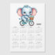 Adorable éléphant sur un vélo 2025 Magnet Calendar