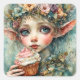 Adorable Elf With a Cupcake Square Sticker