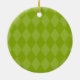This is an adorable Christmas ornament. Great for a gift or yourself. It has a dark green and light green background with diamond shapes with a red circular trim then a thin green border with a white inner circle. In the centre are two elves decorating a Christmas tree. The girl elf is standing on a ladder putting the star on the top of the tree while the boy elf is on the side hanging up an ornament on the tree. Personalize with the year. This will be a keepsake for many, many years to come. Check out the many other designs we have. © JW Illustrations