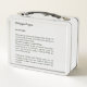 This is a standard metal lunchbox that appears to work just fine. We designed this box ourselves with an uploaded photo and custom text on the front and back. It looks absolutely beautiful except the front of the lunchbox is not centered like it shows in the photo. The print borders don't align with the inset flat part of the box where the preview photo online showed it perfectly centered in there. The back looks nice and centered though.