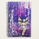 This design features a cute young fairy sitting on a swing in a fantasy filled scene with lots of gorgeous flora and fauna in pink and purple tones.