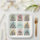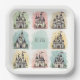 These personalized paper plates feature fairy tale-themed doodles of adorable sketched castles! Each design showcases a whimsical, playful style with soft and cheerful details. The drawings are set against pastel backgrounds like soft mint green, baby pink, powder blue, and pale yellow.