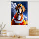 Portrait of a cute and adorable brown, black and white firefighter dog with cloud and sky in background. This is a AI generated art.