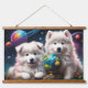 Adorable Fluffy Samoyed Puppies, Planets Earth Hanging Tapestry