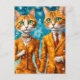 Adorable ginger cat couple postcard