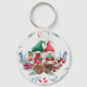 Cute watercolor gnome with lantern and Christmas tree and decoration of mistletoe, pine cone, and red and blue berries