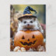 AI generated art of an adorable Halloween hedgehog witch and a jack-o-lantern