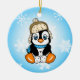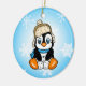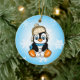 Adorable Hand drawn Penguin with Snowballs Ceramic Ornament