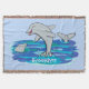 Adorable happy dolphins cartoon illustration throw blanket