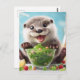 Adorable Happy Otter Making a Salad Postcard