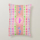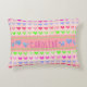 Cute pillow with multicolored hearts, a pink and green banner, and a tiara on the back. Perfect for your little princess. Easy to personalize. Just change the name. You can't mess up because all the other features are locked. 100% cotton!