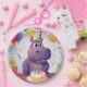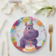 Adorable Hippo Celebrating Birthday with Cake Paper Plate