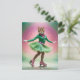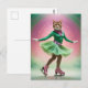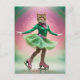Adorable Ice Skating Cat in Green and Pink Postcard