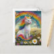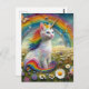 An adorable kitten unicorn with a rainbow in an encaustic looking mixed media style