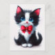 This charming illustration features a tuxedo kitty with striking black-and-white fur, adorned with a dapper red ribbon. The design radiates warmth and whimsy, perfect for cat lovers. Its adorable and elegant style makes it ideal for Valentine's Day cards, decor, or merchandise that celebrates love and feline charm.