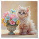 Adorable Kitty with Bouquet of Flowers Tile